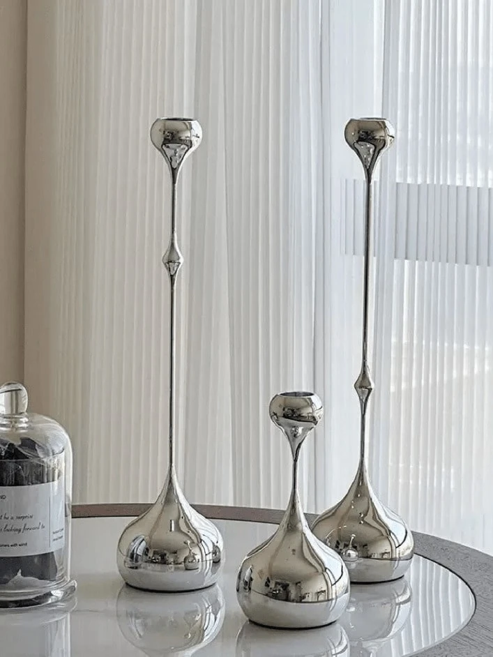 1/3 Stücke moderne Kerzenhalter, französische silberne Wassertropfen Metall Kerzenständer, Eisentränen-Kerzenständer für Stumpenkerzen für Heim-Dekoration, Metall-Tisch-Mittelpunkt, Dinner-Dekoration, hoher Kerzenhalter für Mutter, Ehefrau, Großmutter