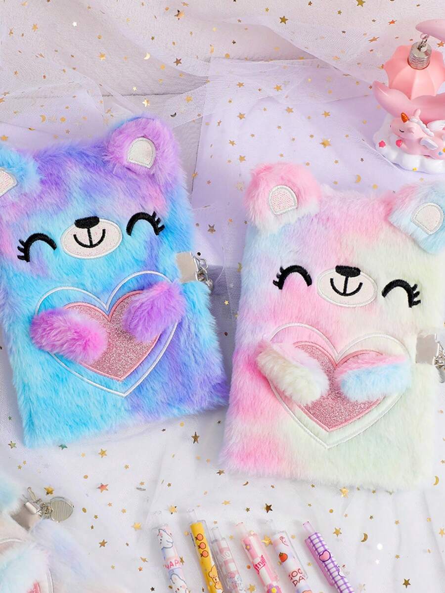 1 Stück Mädchen Tagebuch mit Schloss, Geheimes Kinder Tagebuch Notizbuch Geschenk zum Schreiben und Zeichnen, Hardcover Flauschiges süßes Bären Tagebuch Mit Kristall Aufklebern Für Mädchen, Geschenke für den Schulanfang