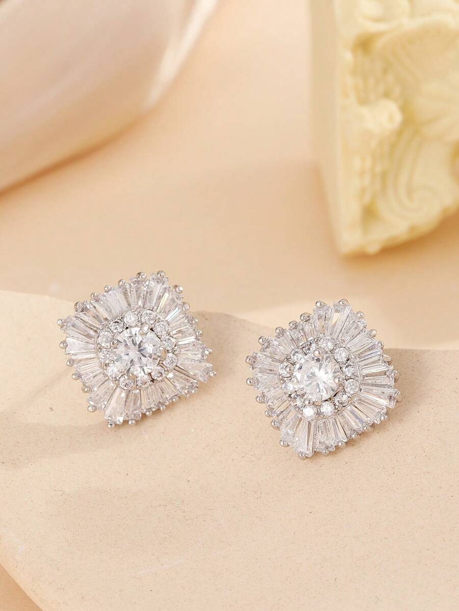 1 Paar luxuriöse geometrische kubische Zirkonia Kupfer Ohrstecker, stilvolle Gestaltung geeignet, Party, Fest und Alltag von Frauen