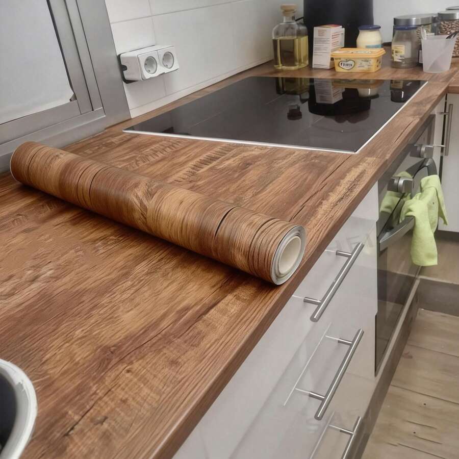 1 Rolle Eichenholz-Optik Selbstklebende Tapete, dick & langanhaltend, geeignet für Arbeitsplatten, Schreibtische, Küchenschränke, wasserfest beschichtet, Holzfurnier Tapete Rolle, Tischplatte Dekor, Küchenarbeitsplatte, Waschtisch, Holzvertäfelung, Arbeitsplatte Folie