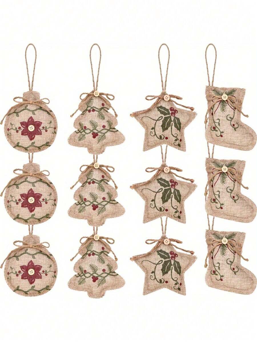 12 Stück rustikale Jutedekorationen für Weihnachten, Bauernhaus-Hängeornamente für Weihnachtsbaum, Party, Raum, Kranz Dekoration Heim Dekoration Raumdekoration Winter