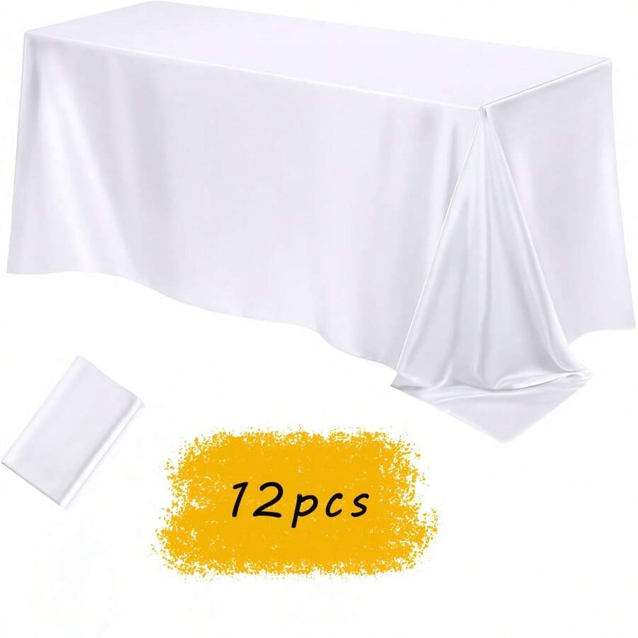 12 Stücke Satin Tischdecken, 145 cm x 259 cm Satin Tischdecken, rechteckige Tischdecken in leuchtenden Farben, glatte Stofftischdecken, geeignet für Hochzeitsbankett, Geburtstag, Outdoor-Party, Hochzeitsfeier Outdoor, Hochzeitszeremonie