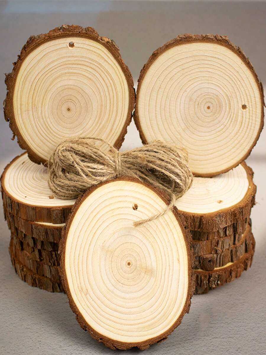 15 natürliche runde Holzscheiben, 2,4–4,0 Zoll großes Holzbausatz mit vorgebohrten Löchern, handgefertigte Holzkreise für Untersetzer, rustikale Hochzeit, handbemalte Weihnachtsdekoration, DIY-Bastelarbeiten