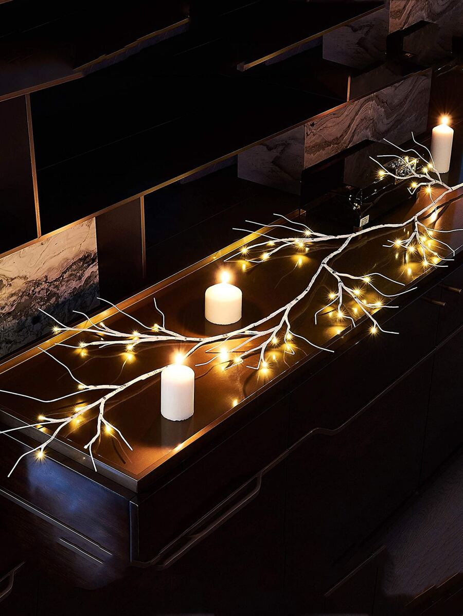 1 Stück 4,75ft 45-LED warmweiße Birkenzweig-Lichterkette, batteriebetriebene dekorative Beleuchtung für Zuhause, Wohnzimmer, Schlafzimmer, Blumenkranz, Lichterkette für Weihnachten, Thanksgiving, Halloween