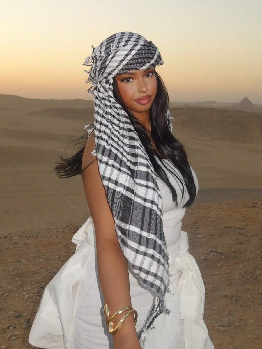 1 Stück Wüsten-Karomuster Schal, klassisches, modisches Abaya-Accessoire, unisex arabischer Outdoor-Sonnenschutz- und Winddichter Quasten-Schal, geeignet für den täglichen und Outdoor-Gebrauch