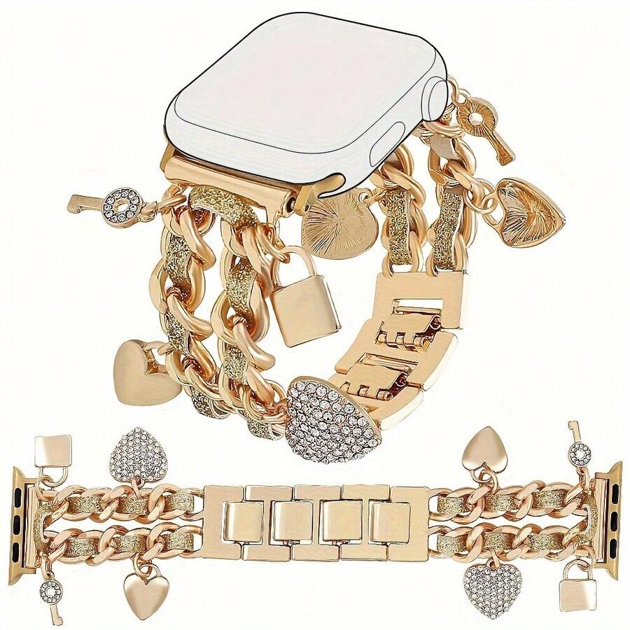 1 Stück elegantes metallisches Bandarmband kompatibel mit Apple Watch Ultra, SE & Serie 1-10, passend für 38mm-49mm Zifferblatt, charmantes gewebtes Leder-Schmuckarmband für Smartwatch, verstellbar, geeignet als Valentinstags-/Geburtstagsgeschenk (nur Armband)