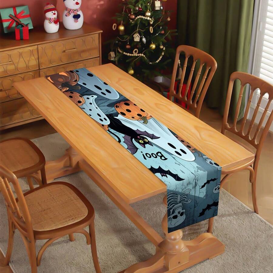 1 Stück Halloween Leinen Tischläufer, Party Feiertags Dekoration Tischläufer, Tischdecke, Halloween Outdoor Dekoration, Halloween Party Dekoration / Party Bedarf, unheimlich / gruselig, erschreckend, unheimlich, dunkel, Trick or Treat