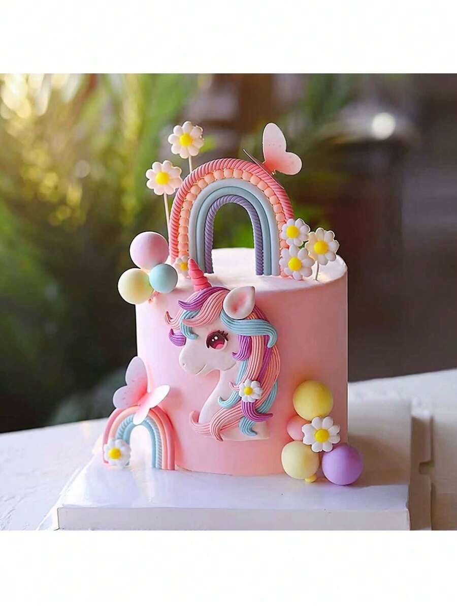 1 Stück Einhorn Tortendekoration, Regenbogen Tortendekoration, weiche Tonkuchendekorationen, Einhorn Thema Geburtstags Topperaufsteller, Wolken Ballon Stern Tortendekoration, geeignet für Einhorn Themen Tortendekorationen, Geburtstagstorte Dekorationen, Taufe Hochzeit Muttertags Tortendekoration, süße niedliche Tortendekoration