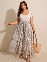 Roveilla Elegantes Lässig Chiffon-Kleid in Große Größen, französischer romantischer Sizilien-Stil, geeignet für den Arbeitsweg, Urlaub, Nachmittagstee, Party, einfarbig, Rundhalsausschnitt, Taillengraffalten, mehrlagiger Rüschensaum, Futter, ärmellos, Maxilänge #1 Bestseller