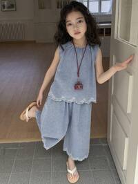 in Leichte Waschung Zweiteilige Denim-Outfits für junge Mädchen