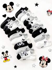 Disney 1/5/10/20 Paar Damen/Paar Knöchelsocken, klassisches Schwarz Weiß Grau Cartoon Mickey Minnie Maus Muster Dekoration, einfach, weich, bequem, Campus-Stil unsichtbare Socken, personalisierte Mode atmungsaktiv feuchtigkeitsableitend Schwarz, geeignet für den täglichen Gebrauch, Geburtstagsfeiern, Outdoor-Sport, Campus-Aktivitäten, Feierlichkeiten, verschiedene Kombinationen erhältlich #1 Bestseller