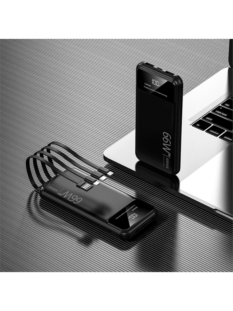50.000 mAh tragbare Powerbank mit 4 Ladekabeln und Spiegelbildschirm, unverzichtbar für Reisen, löst Akkuangst