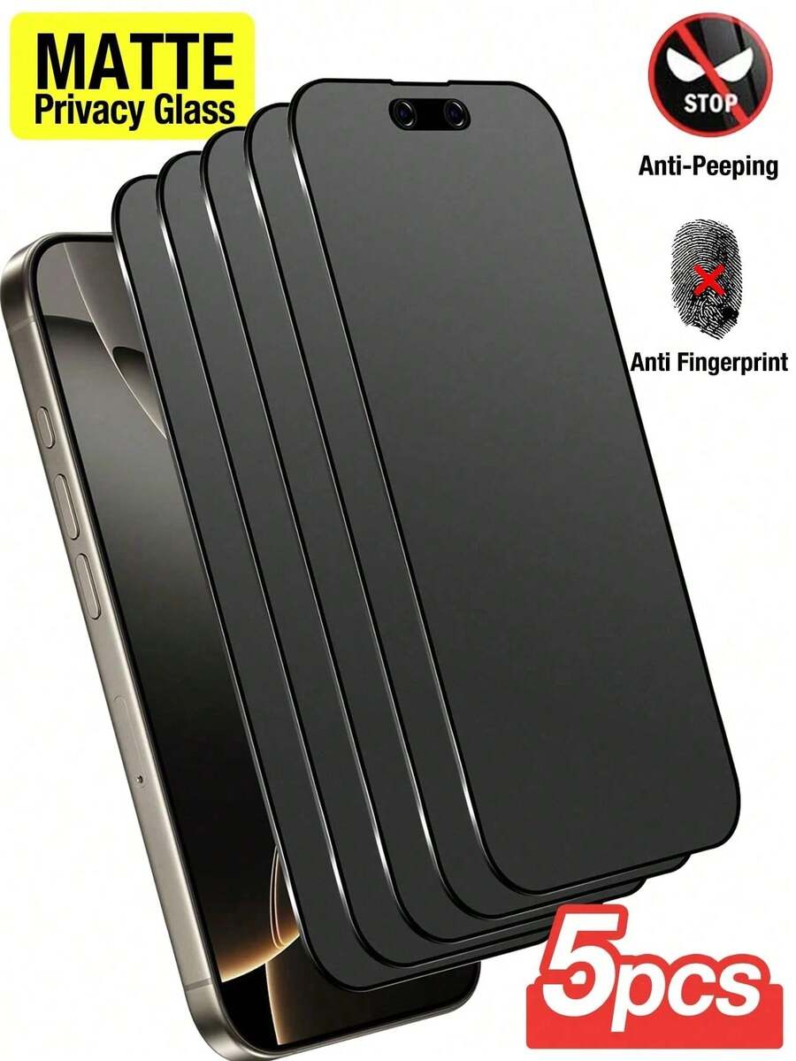 ZYSHI 5 Stück/Set matter Datenschutz-Bildschirmschutz, Vollflächenabdeckung, Fingerabdruck-abweisend, kratzfest, Datenschutz, glatte Oberfläche, kompatibel mit iPhone 17 Pro Max/17 Pro/17 Air/17/16 Pro Max/16 Pro/16 Plus/16/15 Pro Max/14 Pro Max/13 Mini/12/11/XS Max/XR/8+/7 Plus Serie