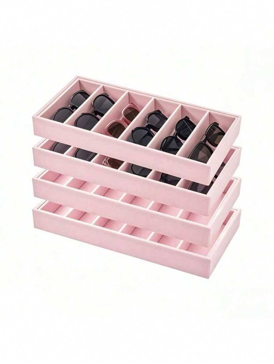 6 Fächer farbiger Samt Sonnenbrillen Organizer Tablett, eine Ausstellungs- und Aufbewahrungsbox für Brillen, Uhren und Schmuck, geeignet für Männer und Frauen
