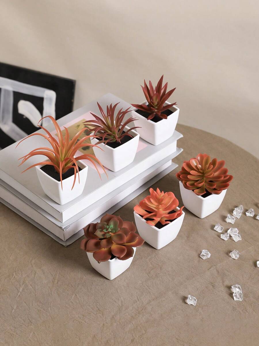 6 Stücke 3,5 Zoll (H) große simulierte Mini-Sukkulenten-Topfpflanzen für das Herbsthaus, Wohnzimmer, Badezimmer, Büro, Erntedankfest, Erntedankfest, Party und als süße Dekoration für den Schreibtisch