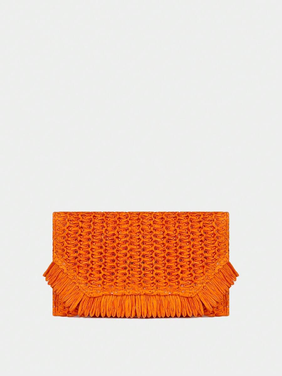 Boho-Stil Stroh gewebte Clutch Handtasche mit Patches und Fransen für Urlaub, Valentinstag