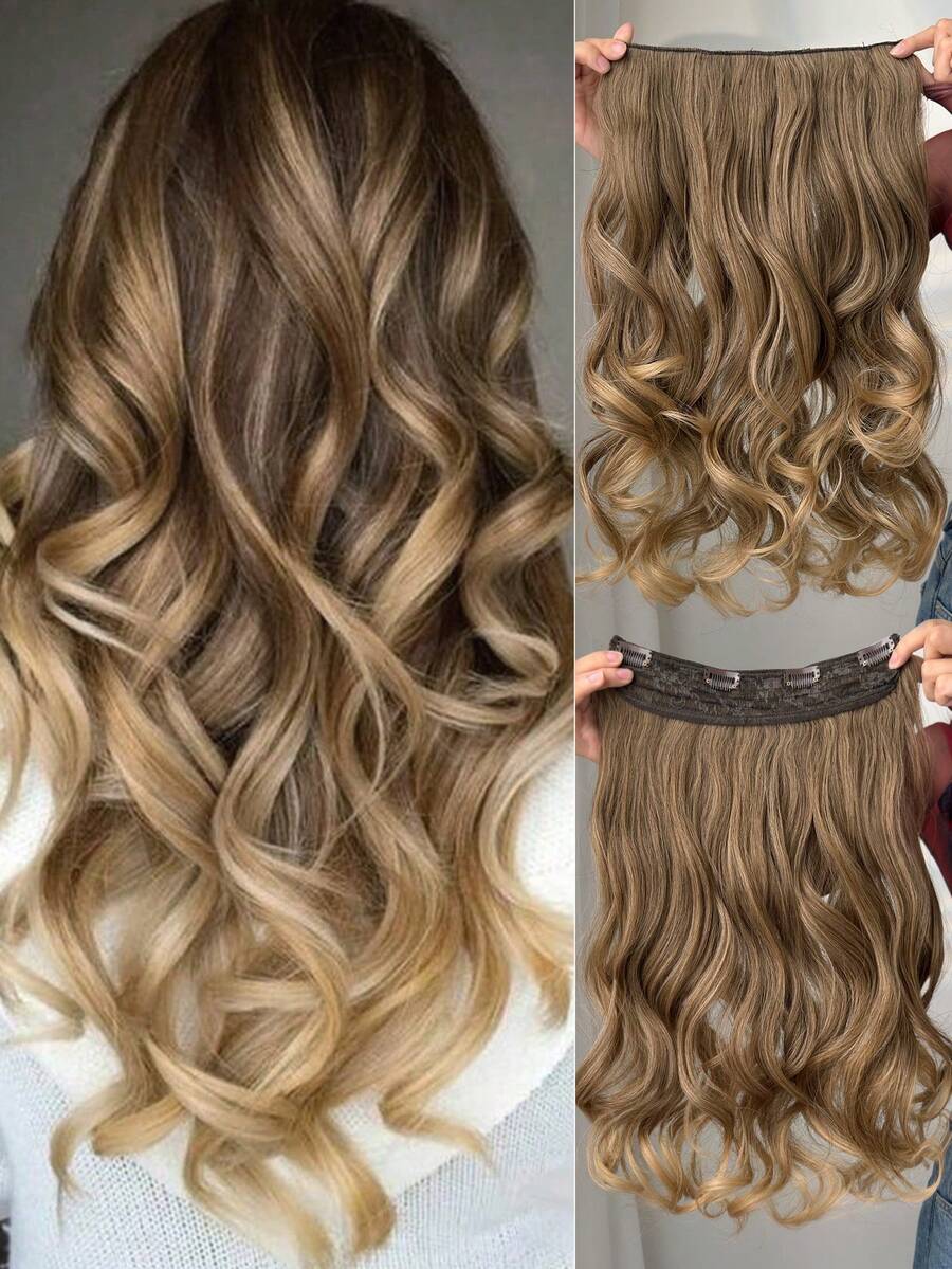 Clip-In Haarverlängerungen Farbverlauf Braun Gold Farbe 20 Zoll lang Natürliche Wellen Lockige Synthetische Haarteil