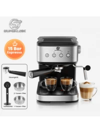 SUPERLEX 6-in-1-Kaffeemaschine, Extraktionskaffeemaschine mit Aufschäumer, 1,5-l-Filterkaffeemaschine für 2 Tassen Kaffee gleichzeitig, Espressomaschine mit One-Touch-Bedienung, Cappuccino-Kaffeemaschine mit 15-bar-Druck, Heißkaffee- und Eiskaffeemaschine für gemahlenen Kaffee, Extraktionskaffeemaschine, Filterkaffeemaschine mit herausnehmbarer Tropfschutzfunktion zur Vermeidung von Reinigung, doppellagiger Permanentfilter aus Edelstahl, spülmaschinenfest, tragbar für unterwegs und gemeinsame Nutzung durch mehrere Personen, geeignet für Latte, Mokka, Cappuccino
