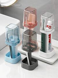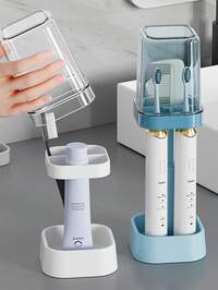 Joivida1 Stück doppellagige Desktop Aufbewahrungsbox, Badezimmerregal, Becherhalter, Tablett, Kosmetikorganizer, klare Arbeitsplatte Ordnungshilfe, einfach zu installieren, geeignet für Büro, Studium, Badezimmer, Schlafzimmer, Heimdekoration, Raumdekoration, Badezimmerzubehör, Herbstdekoration, Rückkehr zur Schule Zahnbürstenhalter für Paar, minimalistischer Zahnbürstenhalter mit Spuckbecher, staubdichter Zahnbürsten- und Zahnpastahalter-Set, Badezimmer-Ablage, abnehmbar, leicht zu reinigen, mit Ablauf, ideal zum Aufbewahren von Zahnbürsten, geeignet für Zuhause, Studentenwohnheime, Schulen, Badezimmer-Zubehör, Badezimmer-Utensilien