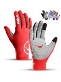 Vilico 1 Paar Outdoor-Sportart Herren und Damen Radsport MTB Handschuhe in Rot, Blau, Schwarz und Weiß mit langem Finger, stoßfest und rutschfeste Silikon-Handflächen-Auflage zum Touchscreen, bequemes Gewebe geeignet für Fitness, Laufen, Gewichtheben, Skifahren, Inlineskating, Volleyball, Basketball, Badminton, Radsport, Bergsteigen, Felsen klettern, Tanzen, Outdoor-Camping, Angeln, E-Bike-Handschuhe #8 Bestseller