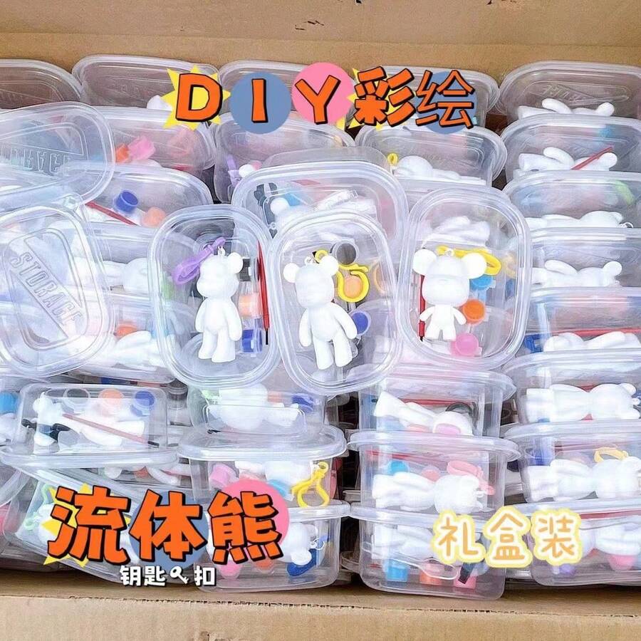 DIY Flüssigbär Schlüsselanhänger, Flüssigbär Graffiti handbemaltes Flüssigbär Graffiti Material Set, kreative Gips Flüssigbär, selbstständiges Pigment, handgemachter DIY kreativer Dekorationsartikel, hervorragender Flüssigbär Schlüsselanhänger