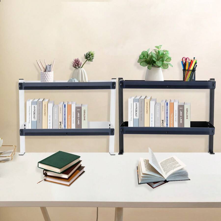 Schreibtischregal mit Klemmvorrichtung, Schreibtischregal mit Klemmvorrichtung, 2-stufiges Regal mit verstellbarem Ablagefach