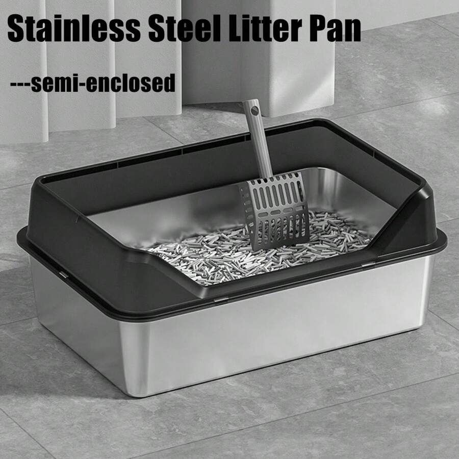 Abgeschlossene Katzenkotwanne aus rostfreiem Stahl mit Deckel, extra große Katzentoilette für große Katzen, Metall-Katzenklo Schale mit hohen Seitenwänden, auslaufsicher, leicht zu reinigen