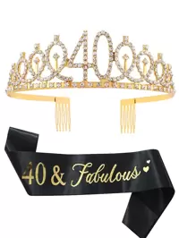 GildedCharm2 Stück/Set Geburtstags-Schärpe und Tiara für Frauen, inklusive Geburtstagskrone, Happy 18., 21., 30., 40., 50., 60., 70. Geburtstags-Schärpe, Schleife, fantastische Kerzen und Kuchendekoration, Geburtstagsgeschenke für Frauen, Partyzubehör für glücklichen Geburtstag, Valentinstag Accessoires in Gold #6 Bestseller