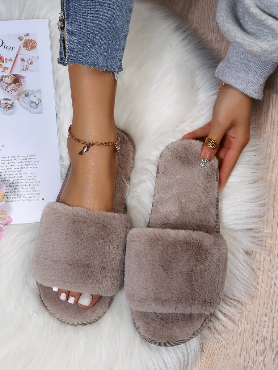 Apricot-farbene, modische, einfache und flauschige Damen Hausschuhe für Herbst/Winter, Schlafzimmer