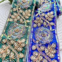 Farbenfroher floraler bestickter dekorativer Besatz - Luxuriöses goldfarbenes Einfassungsgewebe, geeignet für Kleider und Heimdekoration, Kleiderbesatz, Handwerks-Materialien, dekoratives Gewebe, Vintage-Design, hochwertige Stickerei, besticktes Gewebe, Nähzubehör, Nähbegeisterte, DIY-Bastler