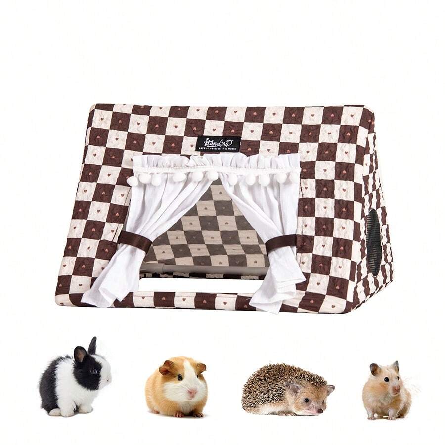ITANDME Meerschweinchen Unterschlupf mit Vorhang ohne Boden Kaninchen Bett Kaninchenbetten leicht zu reinigen & stabil Igel Bett Kleintier Bett für Frettchen Eichhörnchen Chinchilla Hamster Maus Ratte