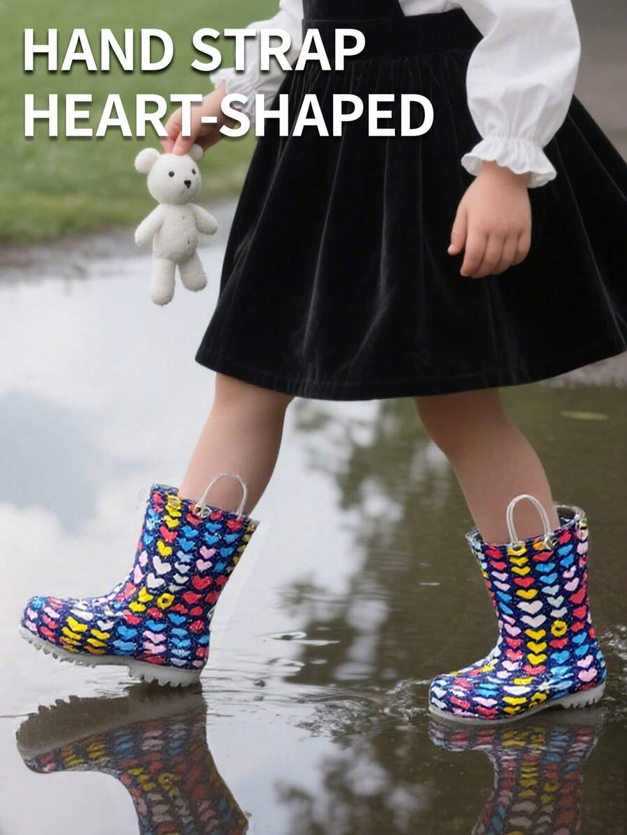 Wasserdichte Regenstiefel, Herzmuster, leicht zu reinigen, guter Halt, Griff zum leichten Anziehen, Outdoor Kinderschuhe