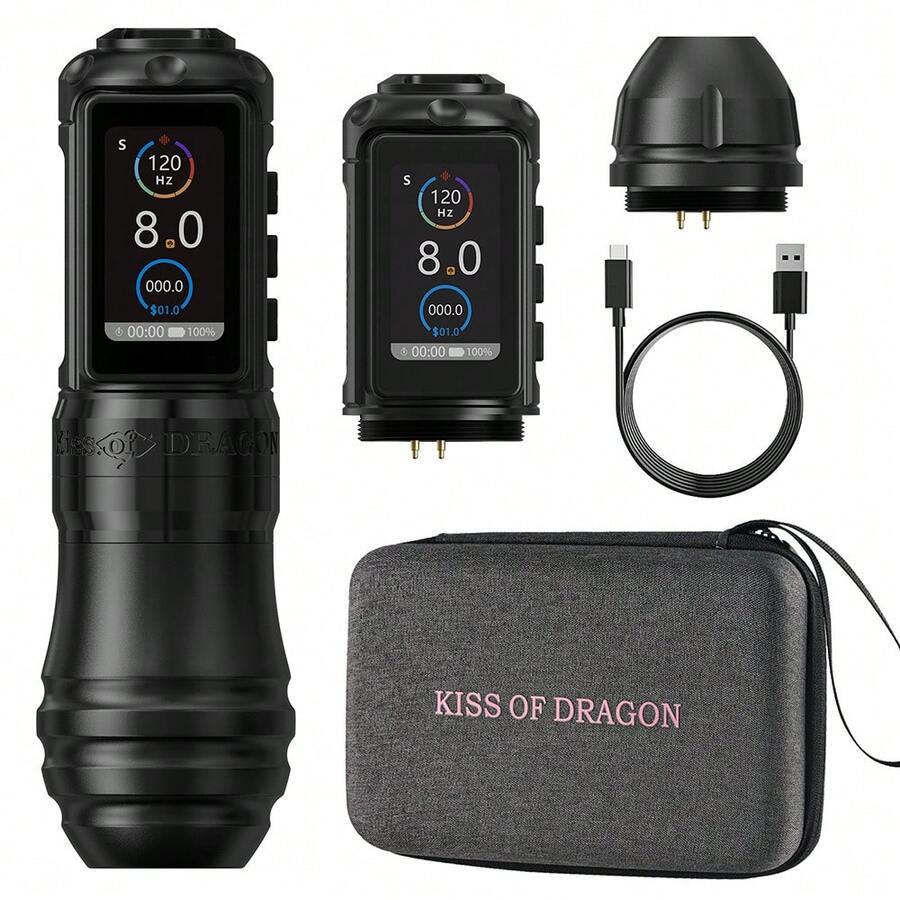 1 Stück Kiss Of Dragon Traveler-T1 kabelloser Tattoo-Stift mit 41mm Griff, bürstenlosem Motor, Extraakku 2000mAh, professionell