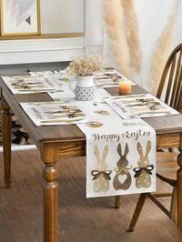 1/4/5/6/7 Stücke Oster Dekorations-Set, Hase, Osterhase, Ostereier, Frohe Ostern, Heimdekoration, Wohnzimmer Dekoration, Schlafzimmer Dekoration, Esszimmer Dekoration, Material aus Kunstleinen, verschiedene Größen erhältlich, Tischdekoration, Kaminsims Läufer, Tischsets, Untersetzer, Wohnaccessoires1 Stück Tischläufer aus Polyester- und Leinenmischung mit Spitze, wasserlöslich, florale Verzierung, minimalistisch & veredelt, rustikale & natürliche, vintage elegante Optik, essentiell für die Küche, kann als Tischläufer, Platzset, Dekor für Schrank, Kaffeetisch, TV-Ständer, Heimfeiern, Feiertage, Innen- & Außenbereich, Party- & Hochzeitsdekoration verwendet werden, in verschiedenen Größen erhältlich, geeignet für alle Jahreszeiten #6 Bestseller