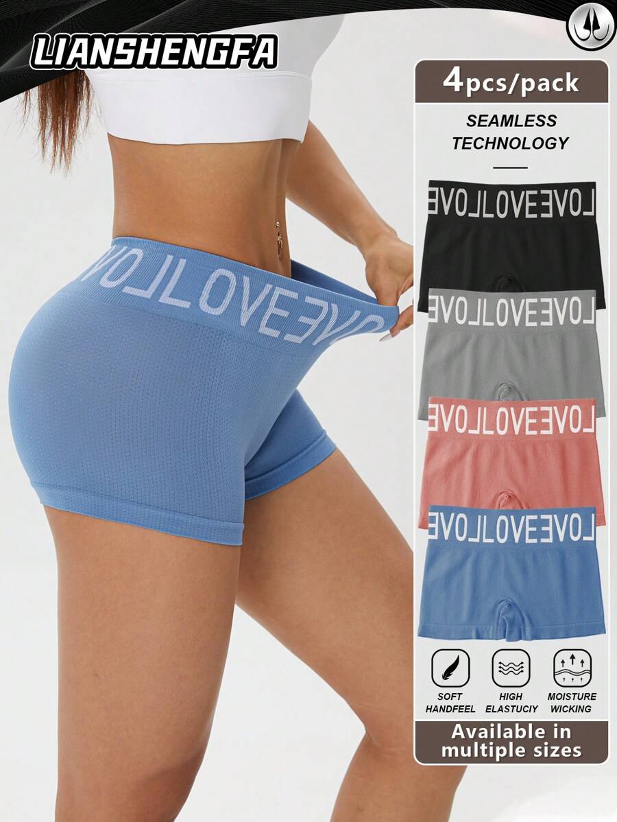 LianShengFa 4 Stück Buchstaben Taillenbund nahtlose Mieder-Formende Höschen, Hohe Dehnbarkeit atmungsaktiver Mesh-Stoff Damen Unterwäsche, Bequem weich sitzende Damen Höschen