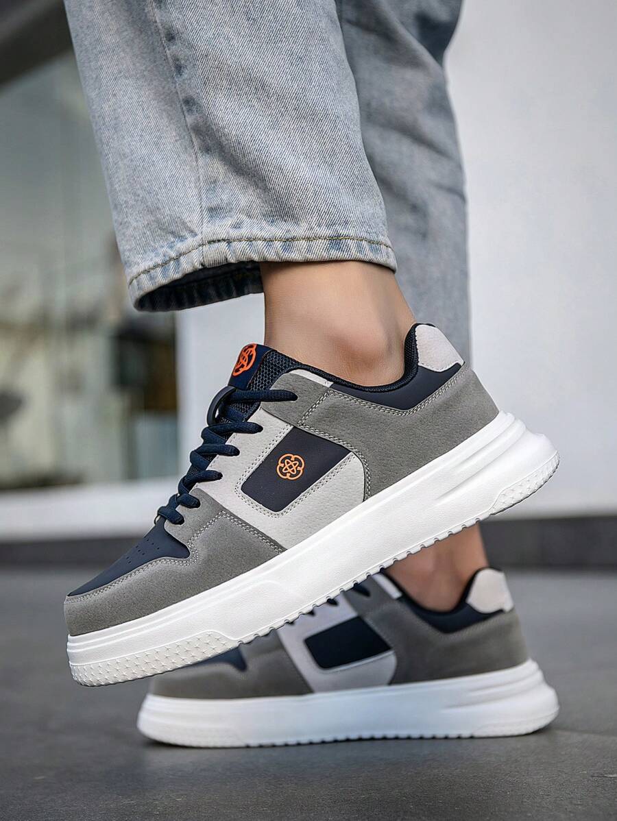 Herren Kontrastartige Patchwork Vorderseite Schnürschuhe mit dickem Plateau, leicht, lässige Sportschuhe, modisch vielseitig, runde Zehenpartie, Blumenmuster, rutschfest, Sneaker