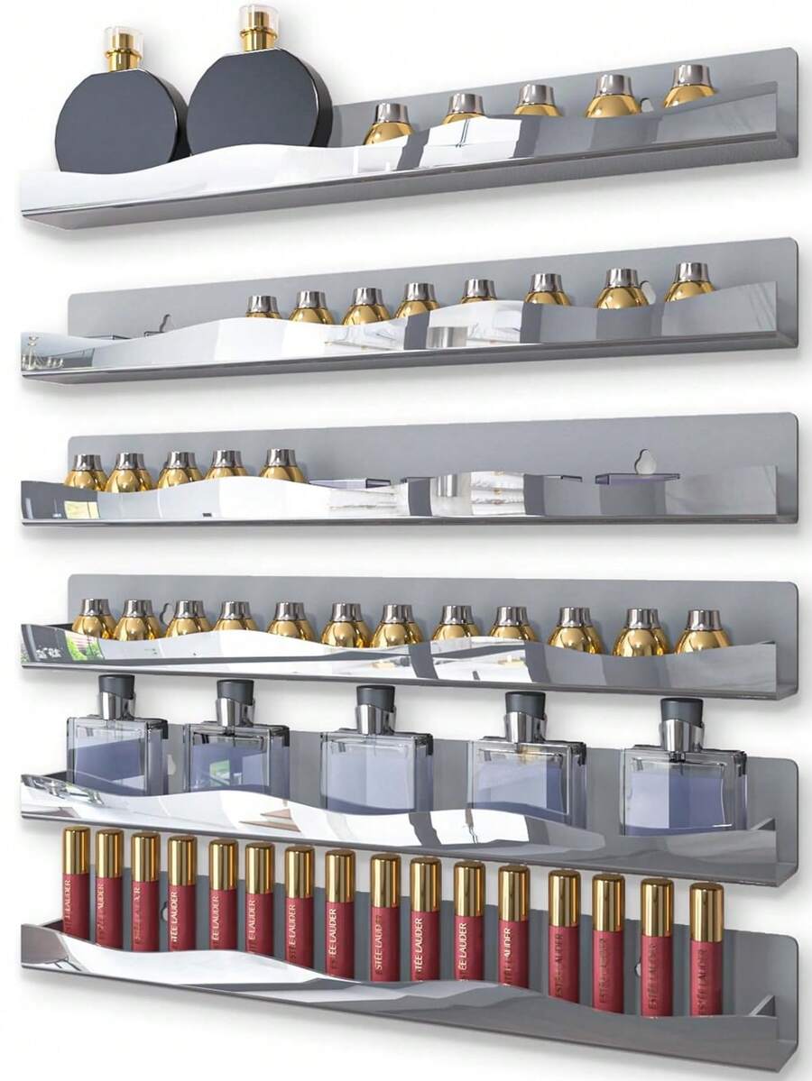 Spiegelgold Acryl Nagellack Regal, 38 cm wandmontiertes Regal Nagellack Regal, Aufbewahrungsregal für Sonnenbrillen, ätherische Öle