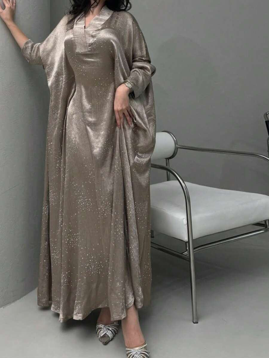 Neue Mittlere Osten Mode Abaya für Frauen mit Strass Dekor, Pullover Lange Robe (zufälliger Strass)