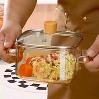 3 Stück quadratischer Hochborosilikatglas Topf Set mit Deckel und doppelten Griffen, Glas Topf mit großer Kapazität + Bürste + hitzebeständige Matte, wiederverwendbar und leicht zu reinigen, transparenter Topfkörper, geeignet für Langzeitkochen, Ramen, Brei, Meeresfrüchte, Glühwein, Milcherhitzung, einsetzbar für Restaurant, Zuhause und Outdoor Camping Hochborosilikatglas Kasserolle, Kochtopf mit großer Kapazität, geeignet zum Zubereiten von Rotwein, Ramen, Milch, Suppe, Meeresfrüchten. Die Zutaten im Topf sind während des Kochens klar sichtbar. Wiederverwendbar und leicht zu reinigen, geeignet für Zuhause, Restaurant, Wohnheim, kann auch als Geschenk verwendet werden.