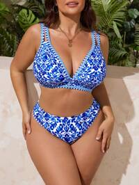 in Stoff Bikini-Sets in Übergröße9,91€