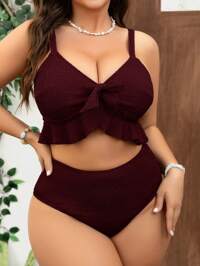 Swim Lushoire Einfacher minimalistischer Leopardenprint Tankini Badeanzug Set Große Größen für Damen