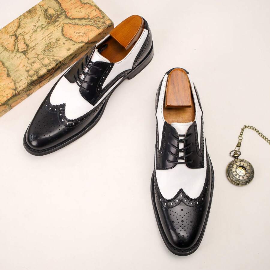 Oxford-Schuhe für Herren Große Größen, Brogue-Design, Flügelkappe, Patchwork Schwarz & Weiß, formelle Abendschuhe, Hochzeitsfeier, Business, Mode, vielseitig, Herren-Lederschuhe
