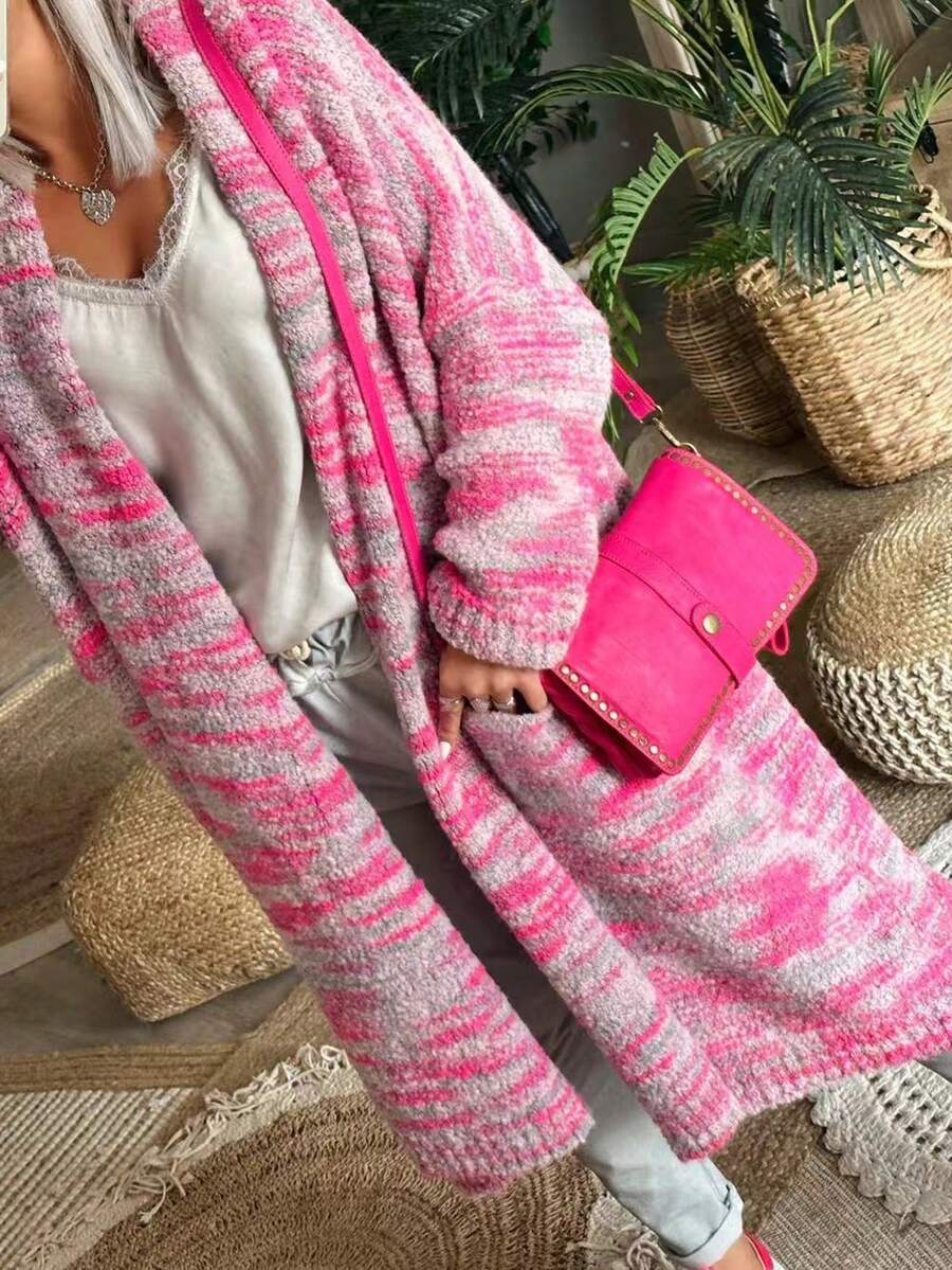 Damen Große Größen Lässig Farbverlauf Mittellanger Cardigan, gestrickter langer Windbreaker Pullover Mantel für Herbst/Winter