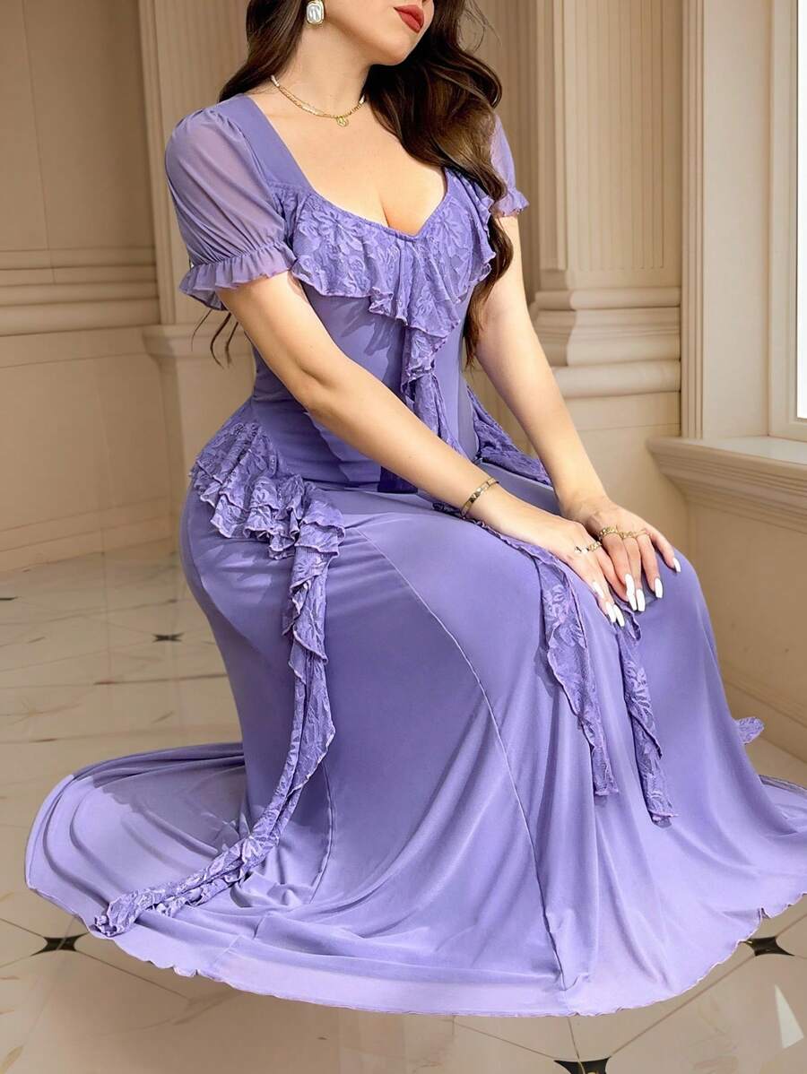 SHEIN Clasi Elegantes Rüschenkleid mit Herzausschnitt für Damen in Große Größen