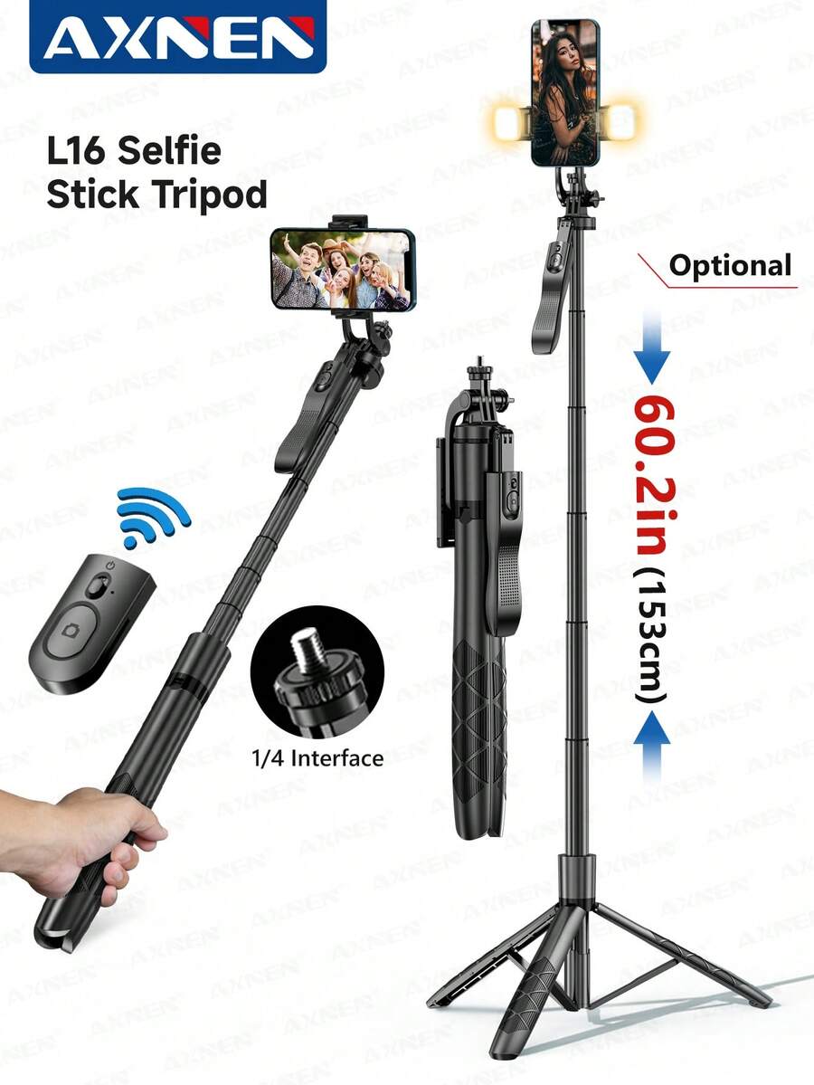 AXNEN Tragbarer Selfie-Stick-Stativ mit Fülllicht, ausziehbarer Aluminiumlegierungs-Bodenstativ, 360° drehbarer Telefonhalter mit Fernbedienung, dimmbare kalte/natürliche/warme Fülllichtfunktion, kompatibel mit Smartphone, Anti-Verwacklungs-Aufnahme, Fotografie, Live-Streaming, Vlogging