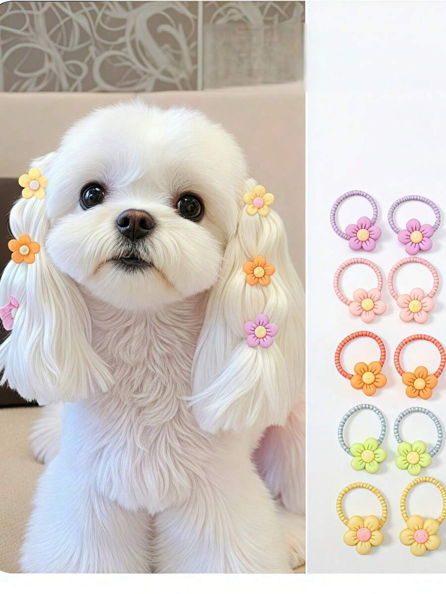 Zufällige Blume, Schleife, Tier Haargummis, süß und ungefährlich für das Haar, geeignet für Katze, Hund und kleine Tiere Dekoration