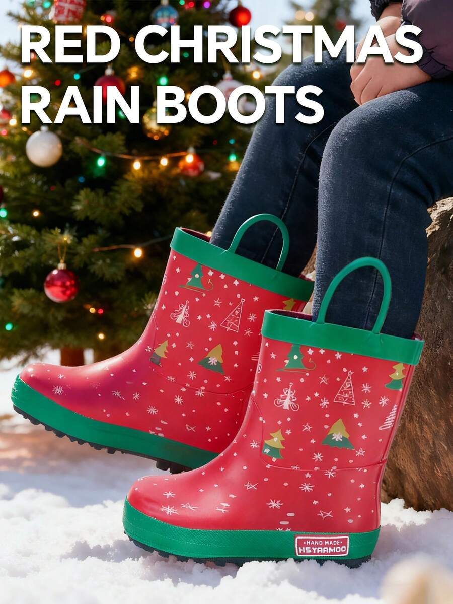 Rote Weihnachts-Babyschuhe Regenstiefel, wasserdichte Stiefel mit starkem Griff, einfacher An-/Ausziehgriff, leicht zu reinigen, geeignet für Outdoor-Aktivitäten Regenschuhe