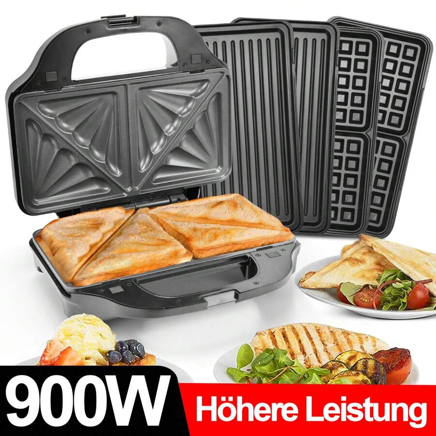 SUPERLEX 3-in-1 Sandwichmaker, Waffeleisen, Kontaktgrill, Spülmaschinengeeignet, Edelstahl, Rutschfeste, Sandwichtoaster für Panini, Waffeln, 900W