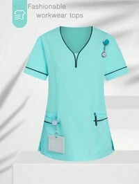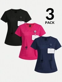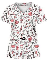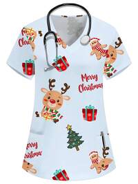 TaskEZ V-Ausschnitt figurbetonte Kasack-Uniformbluse, lässig und stilsicher für den täglichen Gebrauch, Kasack-Set, Krankenhauskleidung, Kasack-Oberbekleidung, Kasack-Hosen, Laborkittel, Laufkrankenschwester- und Uniform-Kasacks, handwaschbar, mit Taschen, atmungsaktiv PopScrub Weihnachts V-Ausschnitt Kurzarm Doppeltasche süßer Lebkuchenmann, Weihnachtsbaum, Weihnachtsgeschenk, Weihnachtsmütze, Stern, Lichterketten Cartoon Muster Krankenschwester/Arzt Arbeitsuniform Top/ Untersuchungs-Chirurgie-Uniform/einfarbiges Hundefriseur Arbeitsuniform Top/Ernährungsberater Arbeitsuniform Kurzarm/Laboruniform, Multifunktionale Arbeitsbekleidung, Funktionale Weihnachtskleidung für Frauen, Weihnachtstops, Weihnachtsdekoration, Niedlich, Fröhlich #10 Bestseller