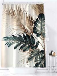 SHEIN 1 Stück luxuriöser tropischer Blatt Duschvorhang - wasserdichter Polyester, grün & goldener Muster mit Haken, maschinenwaschbar, ganzjährige Dekoration für das Badezimmer, Duschvorhang Sets für Badezimmer, Valentinstag Geschenk für Freundin/Freund, Geburtstag, Heimdekoration Badezimmer, Herbstdekoration, Badezimmer Accessoires, Rückkehr zur Schule #8 Bestseller